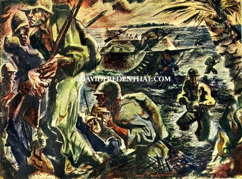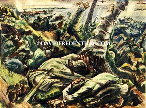 Into The Jungles Of Arawe plunge men of the assault waves who have just landed from